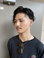 スパイラルパーマ、前下がり、スキンフェード、かき上げスタイル、メンズミディアム、メンズショート、ウェーブヘア、黒髪&パーマはムードが出る王道スタイル