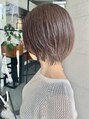 ほんのり前下がりでカットした大人っぽいショートボブ。クセのある髪質の方ですが。膨らむ所やうねりがある場所を見ながら軽くすることで、ハンドブローでまとまります。カラーは8トーンのオリーブグレージュで赤味を消しながら、品のある仕上がりに◎