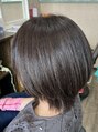 後頭部を中心に少しレイヤーを入れて丸みを出しました。これからの季節に向けて、ふんわり軽いスタイルになりました!カラーは赤みを抑え、ブルーが多めのアッシュです。
