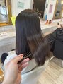 カラーは、6トーンレベルで、なるべく艶のあるバイオレットカラー!美髪矯正で12月ぶりのメンテナンス矯正!