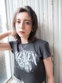かき上げバングに外ハネボブのヘアスタイル!ボブだと重さが気になってしまう方可愛くなりすぎないようにしたい方にもオススメのクールな雰囲気のボブスタイルです。ヘアカラーは重たく見えにくいようにくすみ系のブラウンで透け感を演出☆【稲毛駅】