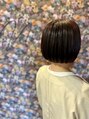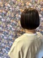 ボブヘアです。前髪は鼻下辺りで作り顔まわりに軽さを出したスタイル。ピンク系カラーです。