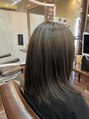 - 全体にブリーチでハイライト、グレー系のカラーをオン!