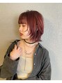 ボルドーカラー×ウルフヘアでモードな雰囲気に