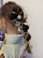 華やかな編みおろしで水引きを用いて唯一無二のヘアを作ることを意識して仕上げさせて頂きました。