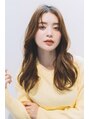 お顔まわりにレイヤーカットをいれ、大きくリバース巻きをプラスした韓国風巻きスタイル。