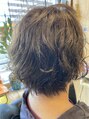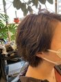 前下がり気味のボブで特に前髪をかきあげ立ち上げたいのと朝のスタイリングが楽なのが、、、とお客様のご要望により毛量はしっかり減らしてから根元から強めスパイラルパーマを。カラーは赤味を出さずベージュ系にアッシュをプラスしました。