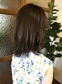 ミディアムヘア アラサーヘア レイヤーカット ばっさりシースルーバング くびれヘア ベージュカラー 透明感カラー