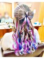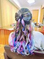 カラーのエクステをつけてリボンヘアーにしてます♪