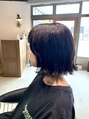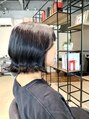 アゴラインのボブヘアにを外ハネに仕上げました。カラーは光が当たると少し青みがかったブルーブラックに^ ^