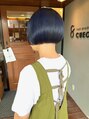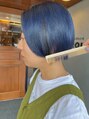 ツーブロミニボブはアンダーセクションは刈り上げてます♪ブリーチハイライト部分に濃いブルーを入れました☆