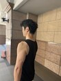 ナチュラルなスペインスカールスタイル。サイドからバックは刈り上げない程度でタイトにカット。長めに残したトップにカールをプラスしてヘアスタイルにアクセントを。スタイリングによって雰囲気の変わる、大人向けのヘアに。