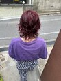 顔まわりを切り込んだカットにずっと残っているパーマをいかしてウルフカットに(^_^)もともと明るいカラーにレッドを!発色の良いカラー、可愛いですね!