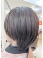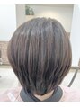 メンズショートの前下がりマッシュ。8トーンのカーキアッシュグレージュカラーで赤みを抑えた仕上がりに。同時施術のアメージングトリートメントでツヤのある柔らかい手触りに。