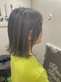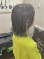 暗めのベースの髪色に細いハイライトのスタイルです。