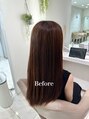 3ヶ月ぶりの縮毛矯正。髪が伸びて根元にクセが出てきて湿気で膨らんだり、うねったりで扱いづらくなってきたそうです。今回は、根元のクセをクセを伸ばしつつ毛先は毛髪強化を行って綺麗な髪へと変身させました。