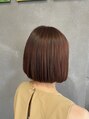 カットは顎下の切りっぱなしボブです。タイトなシルエットになるように、毛量調整してあります。カラーはN.カラーのスカーレットの7トーンと、ペオニーの7トーンです。
