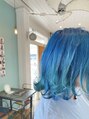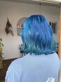 ブルーヘアー。光の角度によってターコイズブルーになります♪前頭ブリーチ2回~