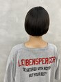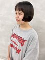 襟足ギリギリラインの丸みあるミニボブ。リップラインに沿って前上がりになってるのがポイント。横から見た感じと後ろのシルエットのバランスが大事!