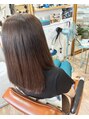 カット、ウルティアマグネットカラー。10数センチ切らせて頂き、ミディアムレイヤースタイル。トーンアップしながら、インディゴメタリックに。上がりにくい髪質なので、14レベル使用して、11~12レベルに着地。