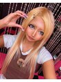 もともとブリーチしてたのを全体ブリーチしてから明るめのイエローオレンジ エクステはおへその長さに50本にメッシュは原色クリームホワイトと原色ペールブルー