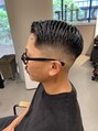 暑い夏にピッタリのサイドパート全体的に長さは短めですっきりまとまります。髭との相性バッチリです!漢らしいスタイルに憧れのある男性お待ちしております。