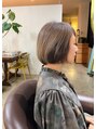 白髪を活かして透明感たっぷりな、デザインカラーのボブ。インナーを暗めに、表面を明るく。立体感をプラスしながら根元の伸びが気になりにくく長く楽しんで頂けるデザインです。まとまりやすいボブにする事で、暑い時期、梅雨時期にもおすすめのデザインです