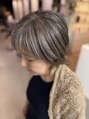 ステップボーンカットカットボブショートハイライト白髪ぼかし