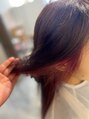 ピンク系のイヤリングカラーをしました。イヤリングカラー以外は暗めに染めてコントラストを。