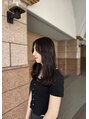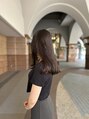 毛先を重ために残したワンレングスカット。フェイスラインやとトップは軽めにして輪郭をソフトに。シンプルながらふわりとした女性らしいスタイルに。
