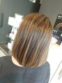 全頭にハイライト、グレージュカラー