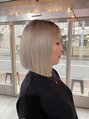 ブリーチ履歴のある髪から根元をしっかりブリーチして、ホワイトベージュのシャドールーツにしました。カットは前下がり切りっぱなしボブです。