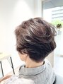 襟足を刈り上げた刈り上げショート。トップに大きめのカールを付け、酸性域の薬剤でダメージを最小限に抑えたスタイルです。