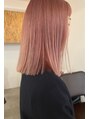 ブリーチ1~2回したベースにシアーピンクをカラーしました。鮮やかすぎず、くすませているので派手すぎないで可愛いです。是非ご相談ください。
