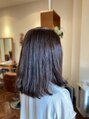 - 広がる髪質の方におさまりが良い梳かない重めミディアムボブ。白髪染めはナチュラルブラウンカラー。