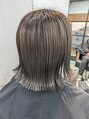 切りっぱなしボブ×グレージュぱつんとした質感に透明感カラーおススメです!