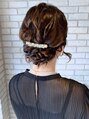 肩より下の長さをルーズにまとめた編み込みローアップ☆結婚式お呼ばれ、パーティーにぴったりです☆