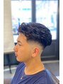 サイドとバックはスキンフェードでトップはオールバックにしっかりカール感のあるパーマをあててます!セットも簡単なのでパーマスタイルではとても人気の髪型です!