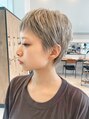 ジェルワックスとオイルでタイトにスタイリングしたベリーショート。カラーはペールトーンのミルクティーベージュカラーに。