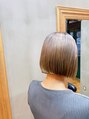 ワンブリーチして、デトックストリートメントでアルカリ除去し、ベージュ系カラーを被せます。切りっぱなしボブにピッタリのカラーです。