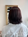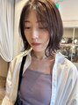 パーマを活かして前髪と馴染むように。カラーはもともと明るい髪を、ラベンダーベージュで艶出しカラー
