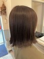寒色系カラーで赤み、オレンジを消して柔らかいベージュカラーに。アッシュを濃く入れ過ぎないようにする事で程よい透明感が出ます。