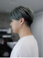 ライトグリーンメンズショートマッシュ 刈り上げ 大野城美容室