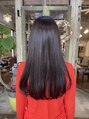 tokioトリートメントでツヤを最大限に引き出したロングスタイル。お顔まわりにレイヤーを入れてトレンド感を。カラーは地毛風のダークアッシュグレー。