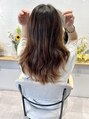 伸ばすか切るか迷われてたのでフェイスレイヤーを入れてガラッと変えてみました^ ^結ぶとショート風になります♪全体カラーはネイビーでインナーはBlue
