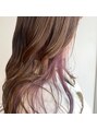 インナーカラーの部分のみブリーチありのカラーです。淡めのピンクパープルに。