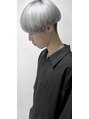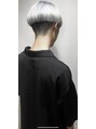 モード溢れるマッシュスタイルは特にバックもツーブロックにする事で個性的なホワイトヘアーにも合うスタイル。カラーはブリーチ3回前後(髪質などにより変動します)オンカラーで冷たさを表現。グレー系とラベンダーを混ぜる事でホワイト系カラーを再現。