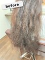 ダメージ・クセが強くクシを梳かすことも困難な状態。仕上がりが自然になるようにわざと毛先を伸ばし過ぎないように薬剤の強さや塗布を調整。いかにもストレートしましたという雰囲気が嫌だったそうですが、指通りも良くなり満足していただけました。