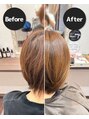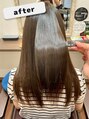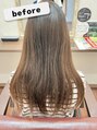 クセが強いわけではないのですが、うねりが気になっているので普通のストレートを繰り返していました。今回はストレートによるダメージのせいでぱさつきまとまりにくい髪を梅雨時期に扱いやすくするために髪質改善で補強をしてあります。