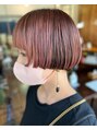 前上がりのデザインボブ。カラーは表面のみブリーチが入っています。伸びてきてもそれはそれで可愛い。デザインカラーとマッチングのいいおしゃれボブです
